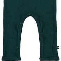 Fenez is een geblokte rib babypakje in groen met blauwe en gele mouwen . Het heeft drukknopen in de boord en in het kruis.