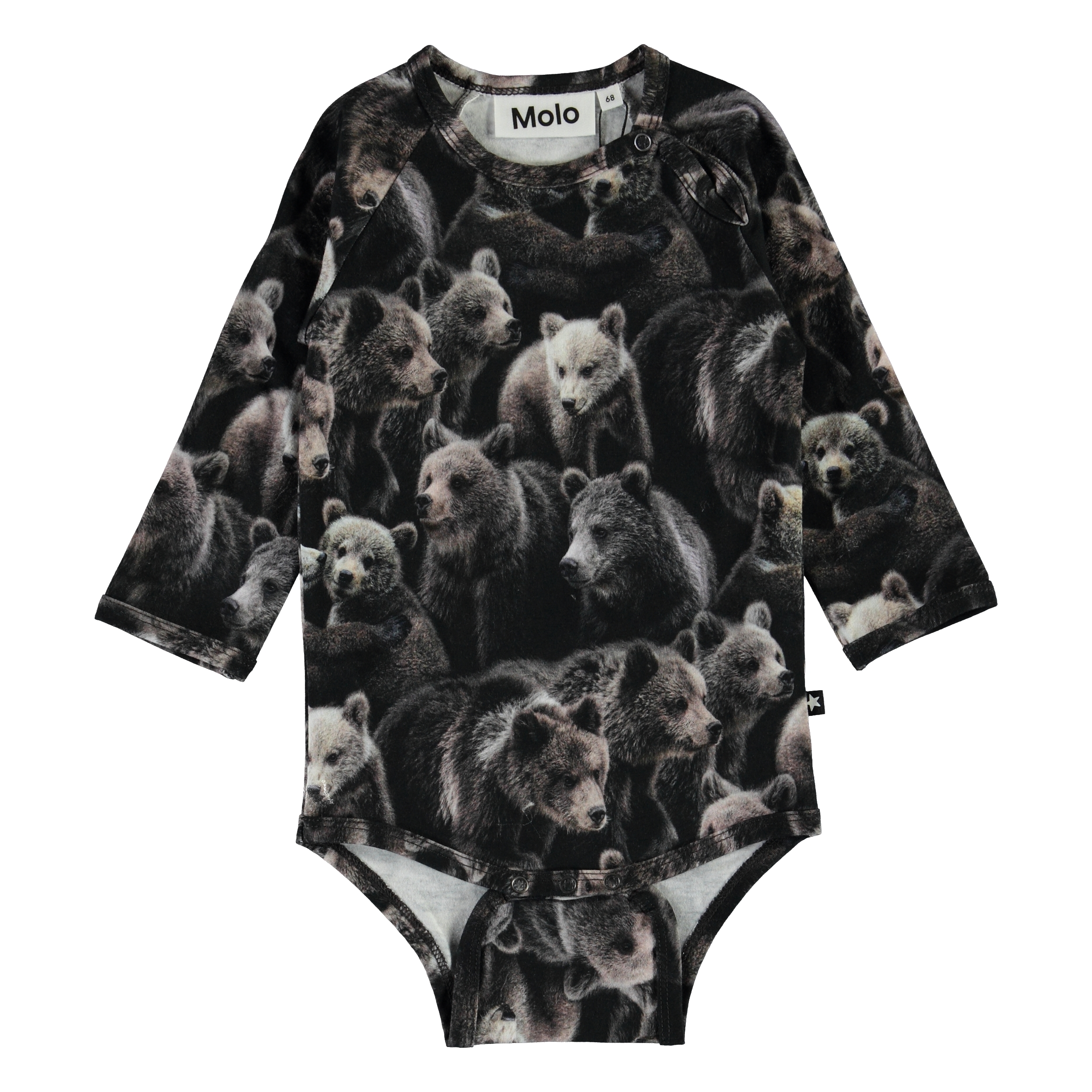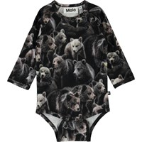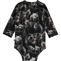Field is een romper met lange mouwen en een print van schattige beren. Het heeft drukknopen in de boord en in het kruis.