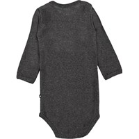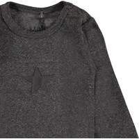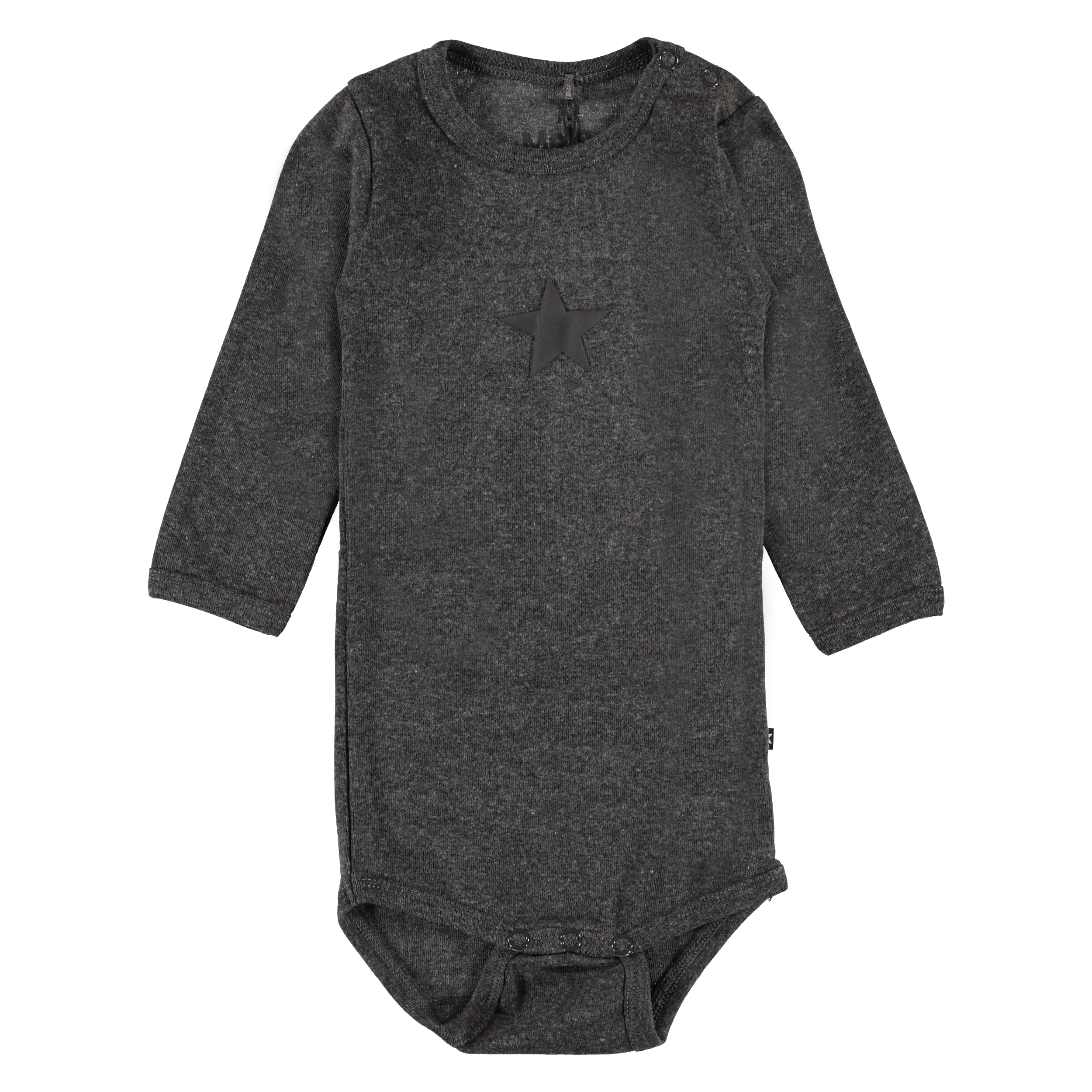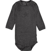 Foss is een donkergrijze romper met lange mouwen en een ster op de voorkant. Het heeft drukknopen in de boord en in het kruis.