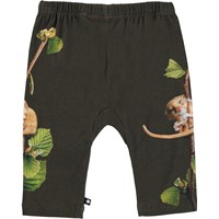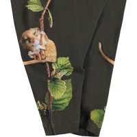 Sabb is een ruimvallende babybroek met aan de zijkant een print van muisjes in de struiken. Het heeft koordjes rond de taille.