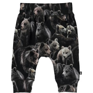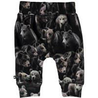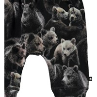 Sammy is een babybroek met een schattige berenprint. Het heeft een brede elastische ribboord rond de taille en pijpen en zichtbare stiksels aan de voorkant voor een joggingbroek look.