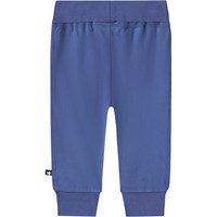 Donkerblauwe broek voor de kleintjes gemaakt van biologisch katoenen jersey. De broek heeft een brede elastische ribboorden rond de taille en pijpen en zichtbare stiksels aan de voorkant. Het is zacht om te dragen en biedt veel bewegingsruimte.