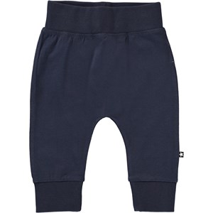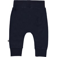 Sammy is een donkerblauwe babybroek. Het heeft een brede elastische ribboord rond de taille en pijpen. De broek heeft zichtbare stiksels aan de voorkant dat zorgt voor een joggingbroek look.