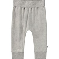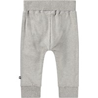 Grijze broek van zachte biologische katoenen jersey voor baby's en peuters. De broek heeft een brede elastische rib rond de taille en pijpen, waardoor het comfortabel is om te dragen en veel bewegingsvrijheid biedt.