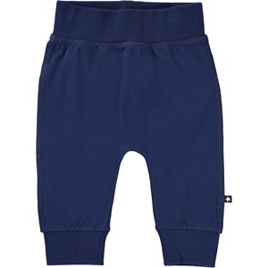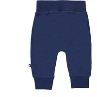 Sammy is een blauwe babybroek. Het heeft een brede elastische ribboord rond de taille en pijpen. De broek heeft zichtbare stiksels aan de voorkant dat zorgt voor een joggingbroek look.