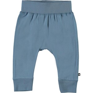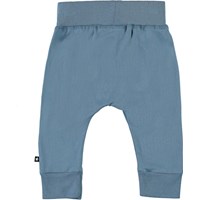 Sammy is een lichtblauwe babybroek. Het heeft een brede elastische ribboord rond de taille en pijpen en zichtbare stiksels aan de voorkant waardoor het een joggingbroek look heeft.