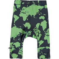 Seb is een babybroek in blauw en groen met een print van de wereldkaart. Seb heeft smalle pijpen en een ribboord. Het heeft een elastische tailleband voor een comfortabele pasvorm.