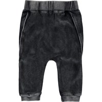 Sido is een donkergrijze fluwelen baby joggingbroek. Sido heeft rib rond de taille en de pijpen.