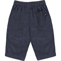 Soy is een donkerblauwe baby jeans met een elastische taille. Er is een babyshirt die perfect bij de broek past.
