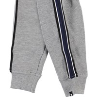 Stan is een ruimvallende grijze baby joggingbroek met een comfortabele pasvorm en een elastische taille met gestreepte koordjes. Stan is de perfecte broek en heeft een zachte voering en rib aan de pijpen.