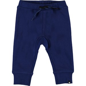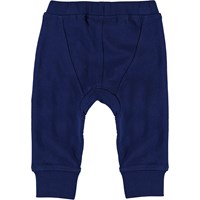 Stan is een ruimvallende blauwe baby joggingbroek met een comfortabele pasvorm en een elastische taille met gestreepte koordjes. Stan is de perfecte broek en heeft een zachte voering en rib aan de pijpen.
