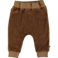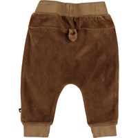 Stein is een ruimvallende baby joggingbroek in bruin fluweel. Het heeft een comfortabele pasvorm met een elastische taille en brede ribboord aan de onderkant.