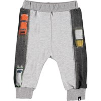 Street is een ruimvallende, grijze baby joggingbroek met een elastische taille met een brede ribboord rond de pijpen. De broek heeft een print van een weg met auto's aan de zijkanten.