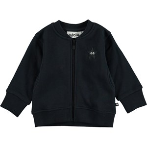 Derek is een donkerblauwe babyvest met een rits aan de voorkant. Het heeft een zachte binnenkant met rib rond de hals, mouwen en onderkant. Het heeft een geborduurde ster op de borst.