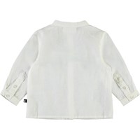 Eno is een lichtgewicht babyshirt in het wit met knoopjes aan de voorzijde.