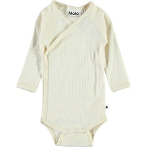 Faye is een romper met een mooi haakpatroon en lange mouwen. Het heeft schuine drukknoop sluiting aan de voorkant en drukknopen in het kruis.