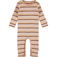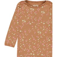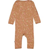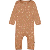 Fenez is een bruin babypakje met lange pijpen en mouwen en een sterrenprint. Het heeft drukknopen op de schouders en in het kruis.