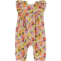 Fifi is een gebloemd babypakje in 100% biologisch jersey katoen met lange pijpen en kleine ruches. Fifi heeft drukknopen aan de achterkant en tussen de benen. Het pak is in de Baby Roses print die je door de tuin voert langs rozen in verschillende kleuren.