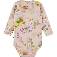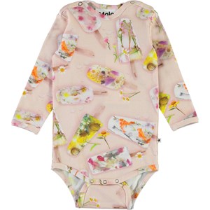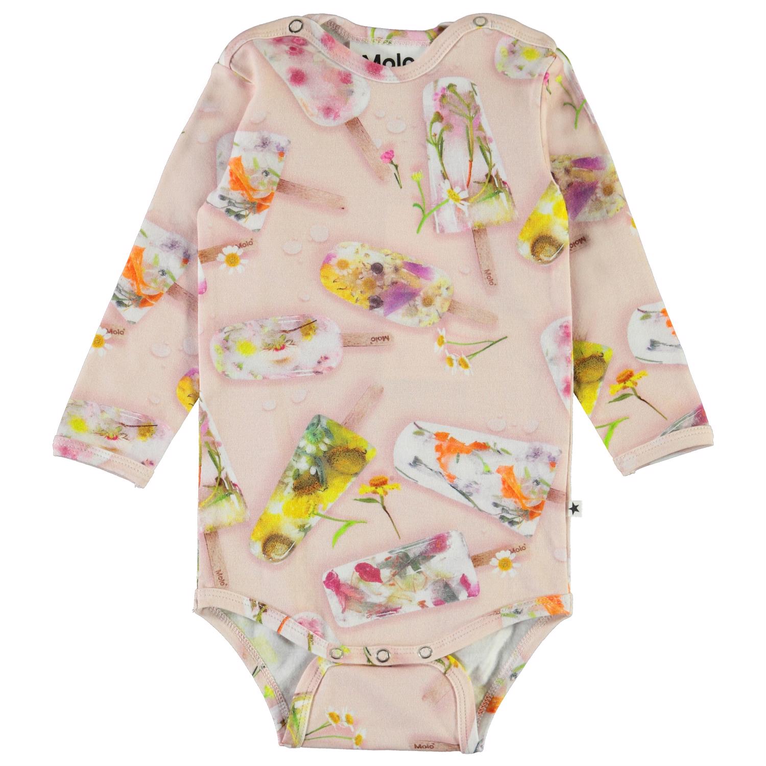 Fonda is een baby romper met een ijsjes print. Molo heeft deze prachtige bloemen ingevroren om deze print te maken. Het heeft drukknopen op de schouders en in het kruis.