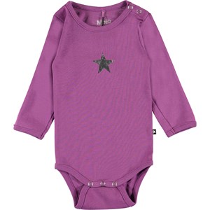 Foss is een paarse romper met lange mouwen en een ster aan de voorkant. Het heeft drukknopen in de nek en in het kruis.