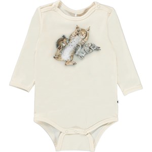 Foss is en lichtroze rompertje met een print van verschillende dieren die elkaar knuffelen. Foss heeft drukknopen rond de hals en in het kruis.