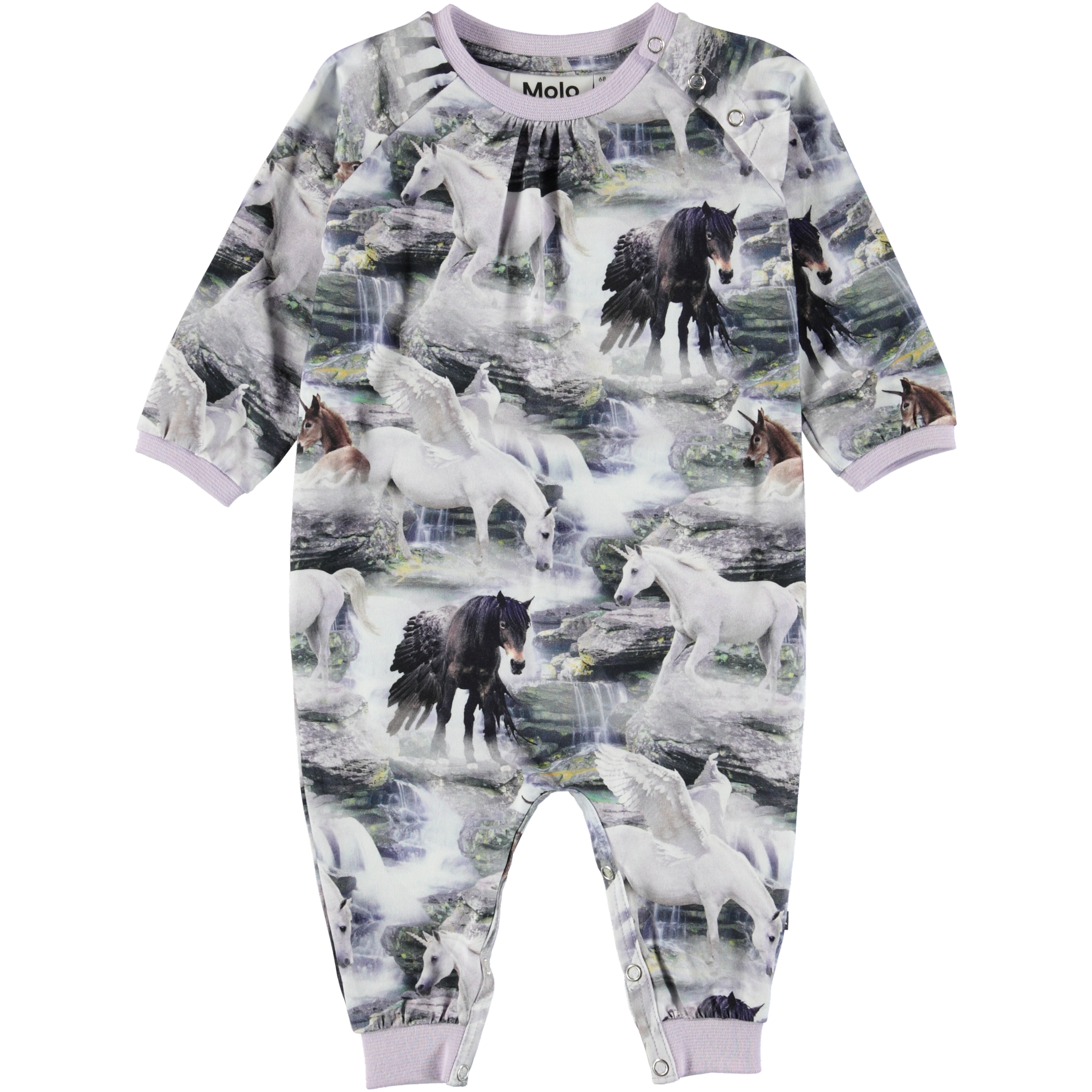 Francine is een boxpakje in de 'Mythical Creatures’ print met een lichtpaarse boord. Francine is ruim en licht gedrapeerd in de hals. Het heeft drukknopen in de hals en in het kruis.