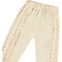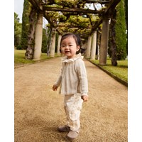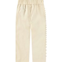 Beige zomerbroek van biologisch katoen voor de kleintjes. De broek heeft een elastische taille, lange pijpen en delicate linten langs de pijpen.