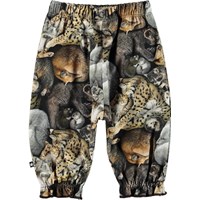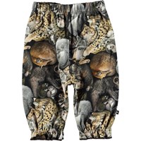 Selena is een babybroek met een print van verschillende dieren in hun winterslaap. Het heeft een elastische boord rond de taille en pijpen.