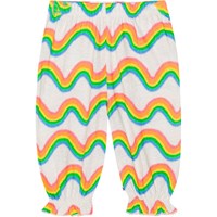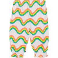 Gebroken witte jersey broek voor kleine kinderen van biologisch gemêleerd katoen. Het heeft rib in de taille en elastiek bij de pijpen voor extra volume. De broek heeft een kleurrijke print van Molo's iconische regenboog.