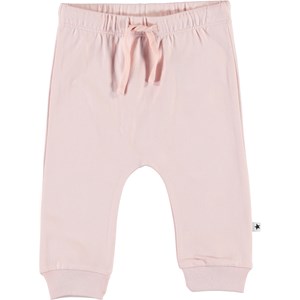Sille is een roze ruimvallende babybroek Sille heeft een elastische taille met koordjes en ribboord aan de pijpen voor een goede, comfortabele pasvorm.