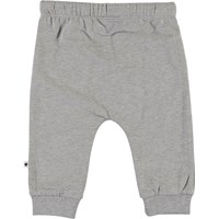 Sille is een grijze ruimvallende babybroek. Sille heeft een elastische taille met koordjes en ribboord aan de pijpen voor een comfortabele pasvorm.
