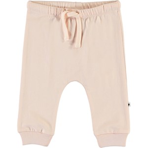 Sille is een roze ruimvallende babybroek. Sille heeft een elastische taille met koordjes en ribboord aan de pijpen voor een comfortabele pasvorm.