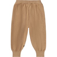 Broek voor de kleintjes gemaakt van een mix van wol en katoen. De broek heeft een brede elastische tailleband, elastiek rond de enkels en valt ruim. Combineer het met de bijpassende sweater.