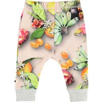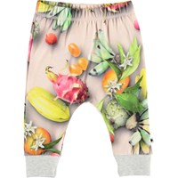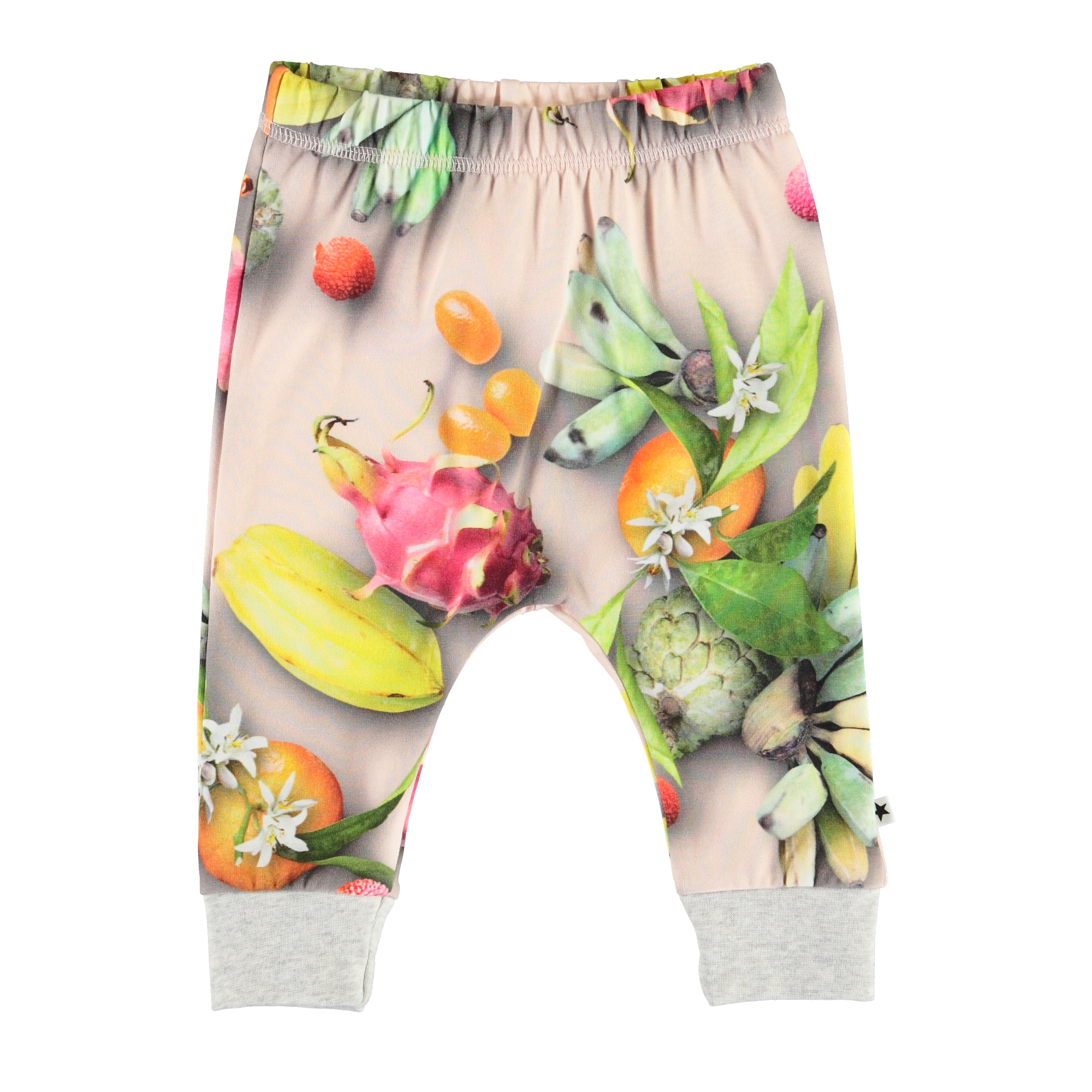 Simone is een ruimvallende babybroek met een print van tropisch fruit. Simone heeft een elastische taille en ribboord aan de pijpen voor een goede pasvorm.