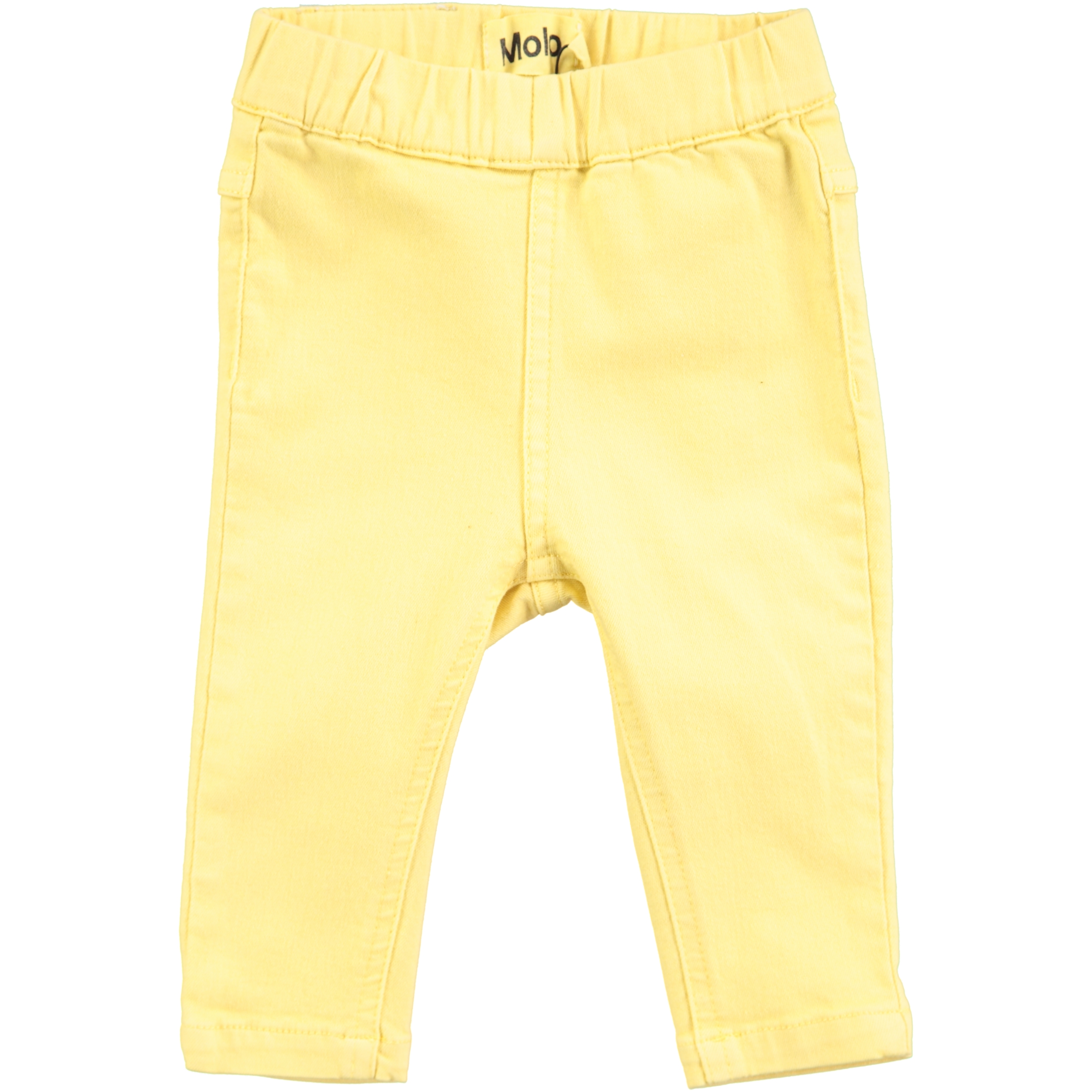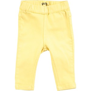Coole, baby denim jegging in het geel met een elastische taille en een lederen patch op één zijkant.
