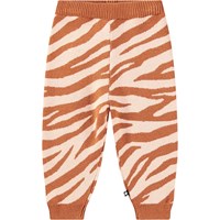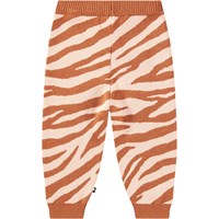 Bruine en roze zebra-gestreepte gebreide broek van een zachte wolmix voor baby's en peuters. De broek heeft rib rond de taille en de pijpen.