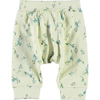 Sona is een witte babybroek met een print van kleine vergeet-me-nietjes. Het heeft een brede elastische tailleband. Draag het met een bijpassend sweater.