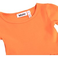 Oranje jurk met lange mouwen voor de kleintjes, gemaakt van biologisch katoen met een hartjesprint op de rok. Het bovenstuk heeft een aansluitende pasvorm van zachte, geribbelde jersey, terwijl de poplin rok voor een mooi volume zorgt. Het is comfortabel om te dragen en gemakkelijk aan en uit te trekken.