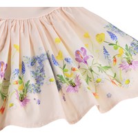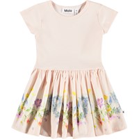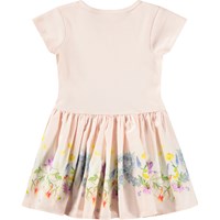 Roze jurk voor de kleintjes gemaakt van zachte, biologische katoen met een bloemenprint op de rok. Het bovenstuk heeft een aansluitende pasvorm gemaakt van geribbelde jersey met korte mouwen, en de aangehechte poplin rok heeft een mooie volume.