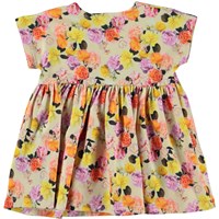 Channi is een crème-groene babyjurk van 100% biologisch jersey katoen met korte mouwen. De jurk heeft een ruimvallende pasvorm met een hoge taille en een luchtige rok. Channi heeft drukknopen op beide schouders. Het is in de Baby Roses print die je door de tuin leidt met de verschillende kleuren rozen.