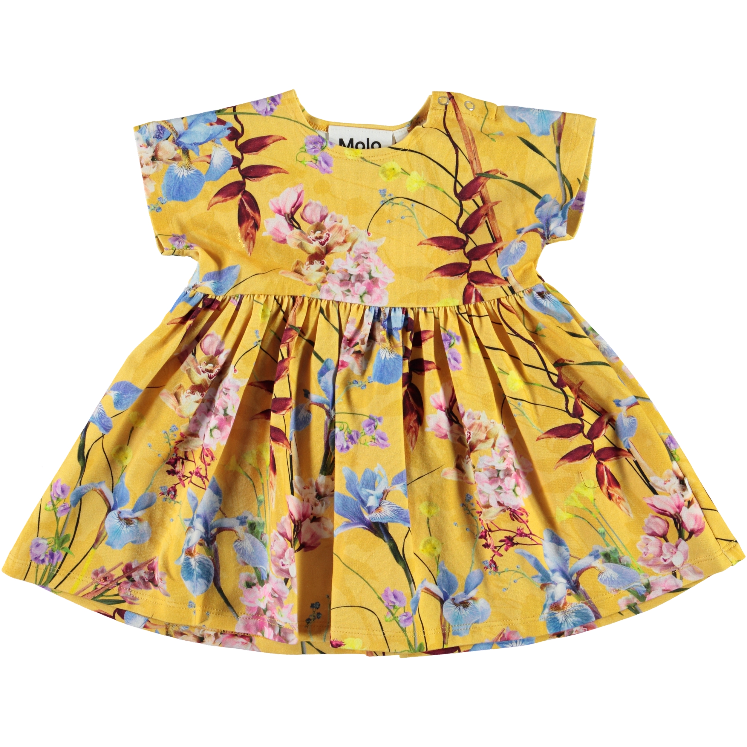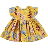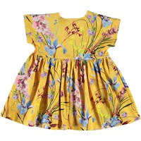 Channi is een roze popeline babyjurk met een print van verschillende dieren die samen een stoer patroon vormen. Channi heeft een ruimvallende pasvorm met drukknopen op de schouders.