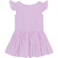 Voor kleine kinderen een paarse biologische jurkje. De bovenkant van de jurk is stretch waardoor je er gemakkelijk in kunt bewegen. De jurk heeft een ronde hals, kleine mouwen en een cirkelrok.