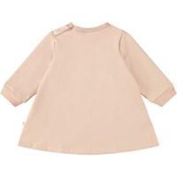 Voor baby's en peuters een lichtroze sweatjurkje van biologisch katoen met een gevoerde binnenkant, waardoor het zacht en warm is om te dragen. Het jurkje heeft een A-lijn met lange mouwen en geribbelde boorden. Het heeft een ronde hals met geribbelde boord en drukknopen, waardoor het gemakkelijk aan te trekken is. Het jurkje heeft een print aan de voorkant van een aquarel geschilderde poes.