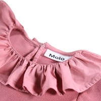Licht bordeaux popeline jurk voor de kleintjes gemaakt van biologisch katoen. De top is gemaakt van geribbeld jersey met een mooie kraag en de rok is van popeline. De jurk heeft een mooie knoopsluiting aan de achterkant om het gemakkelijk aan en uit te kunnen trekken.