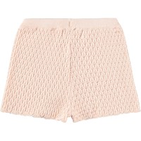 Roze gebreide shorts voor de kleintjes, gemaakt van zacht, biologisch katoen. Ze hebben een elastische taille en een comfortabele pasvorm.