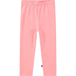 Roze biologische legging voor baby's en peuters. Het heeft een elastische taille en is gemaakt van zacht materiaal, wat zorgt voor een comfortabele pasvorm.