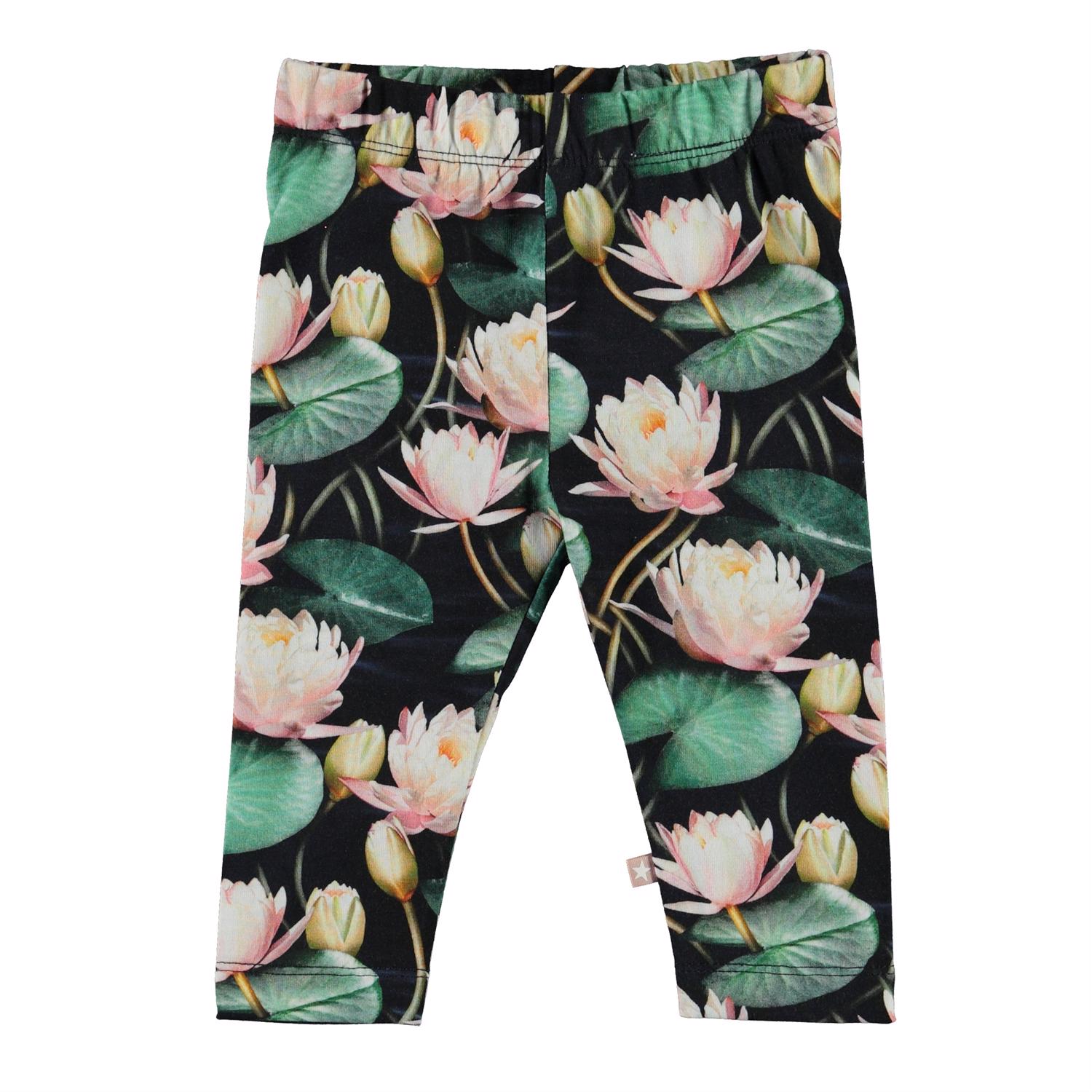 Stefanie is een babylegging met een print van waterlelies. De elastische tailleband en zachte stof zorgen voor een goede pasvorm.