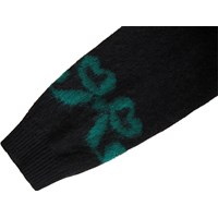 Gebreide wollen trui voor de kleintjes. De trui is zwart met kleurrijke geweven strikken aan de voor- en achterkant. De trui heeft ribboorden rond de hals, mouwen en taille. Combineer het met de bijpassende broek voor een complete set.