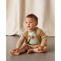 Gillis is een warm gebreide babyvest in 100% biologische katoen. Gillis is gebreid in een prachtig geometrisch gatenpatroon. Het heeft een ronde hals en witte knopen aan de voorkant.