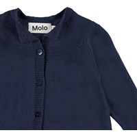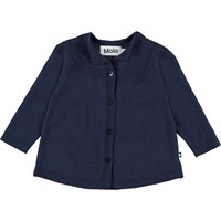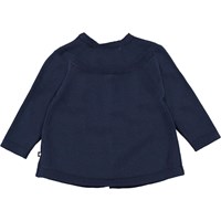 Gisela is een baby katoenen vest in donkerblauw in een A-lijn. Het vest heeft mooie stiksels rond de kraag en een knoopsluiting aan de voorkant.